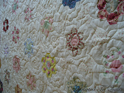 Last week I was given a stunning quilt by one of my long time and favourite customers. (The quilt was made by her sister, and is beautifully pieced). She wants feathers in the pink diamond area made of hexagons. But how to place the feathers she left up to me.