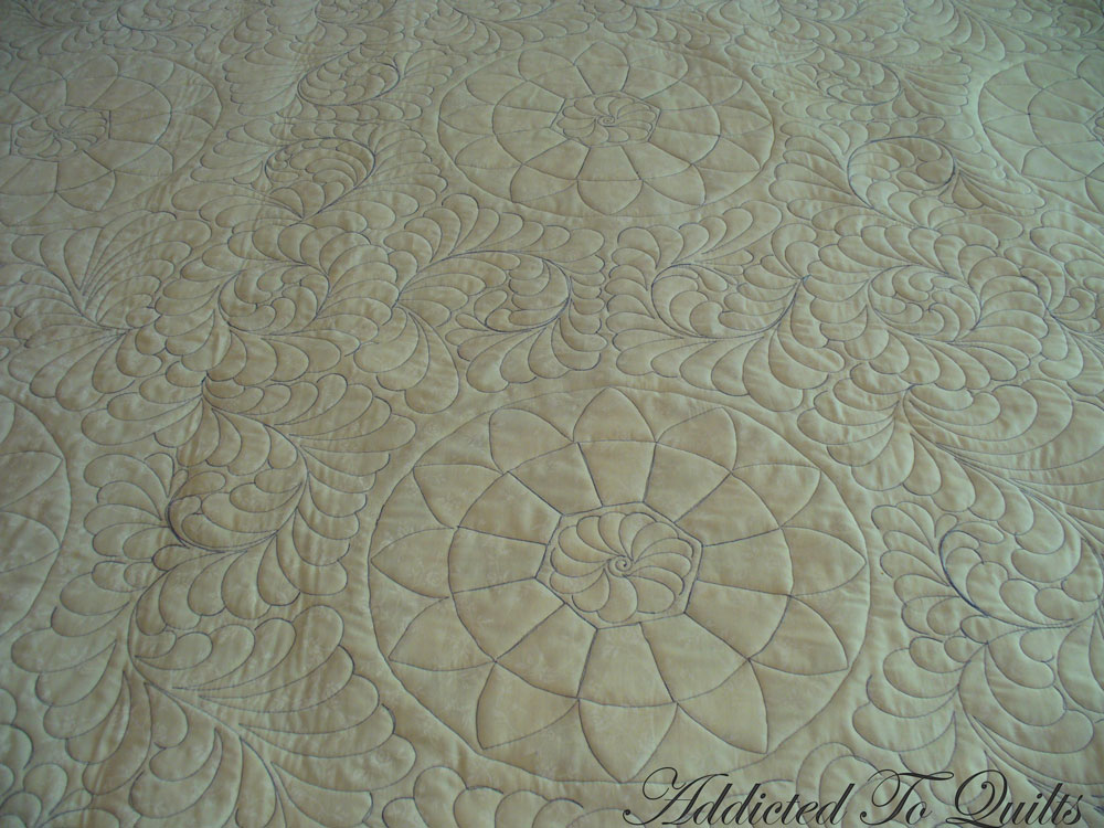 These photos show the quilt on my A1 machine. Those with the same machine will see I have removed the top front roller. I don’t use this roller and found it got in my way.